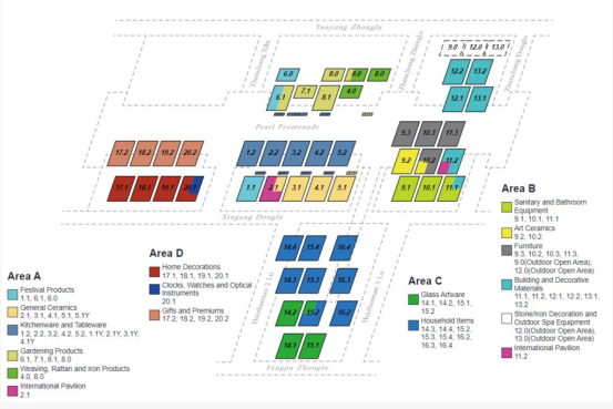 El recinto ferial de Cantón es enorme. Asegúrate de consultar el siguiente mapa antes de asistir.