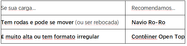 Mercadorias excessivamente altas: Máquinas e equipamentos altos demais para um contêiner padrão.